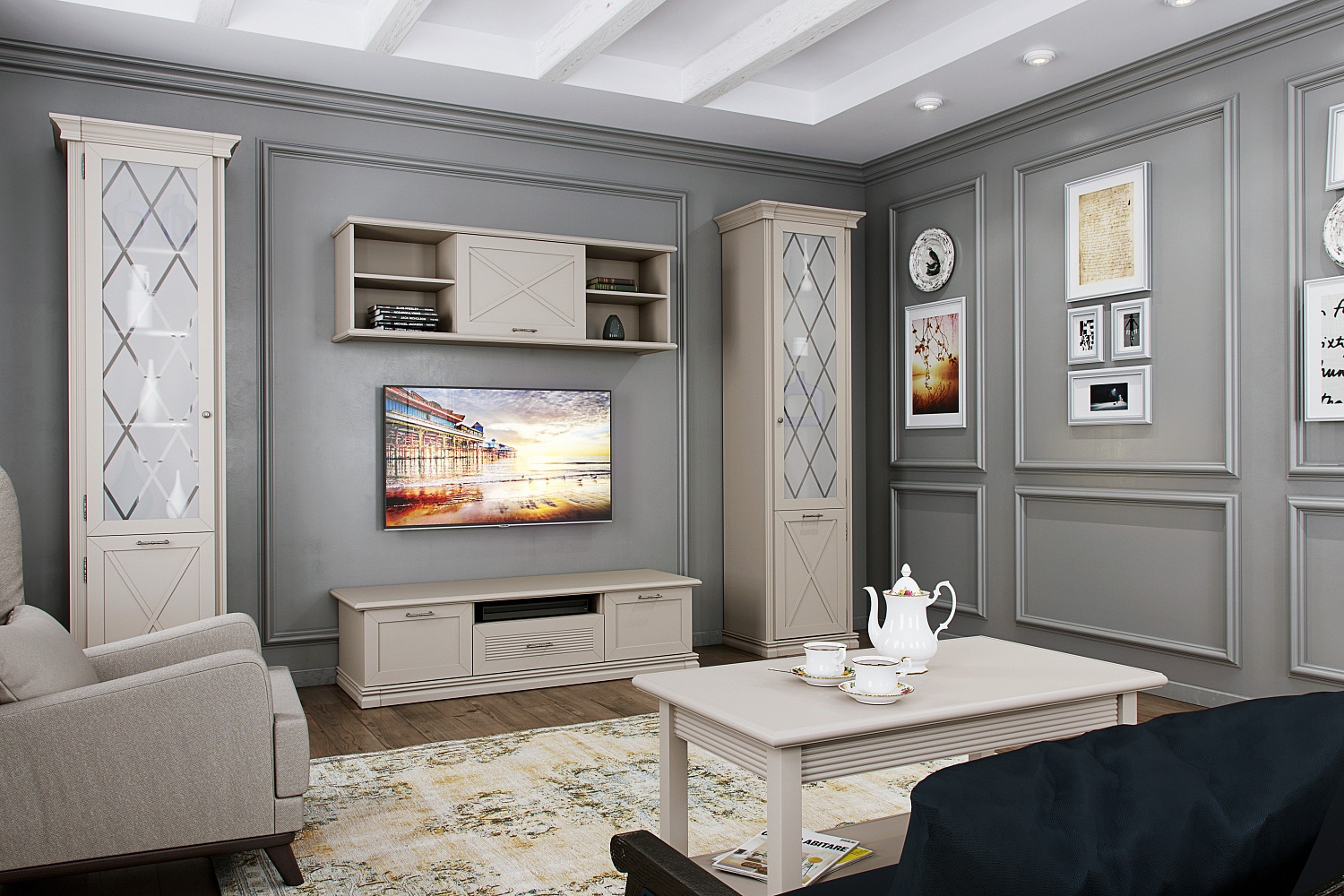 – описание: назначение для книг, для посуды, многоцелевой, размер 223x45x45 см, цвет кашемир серый, стиль прованс, кантри, классический.