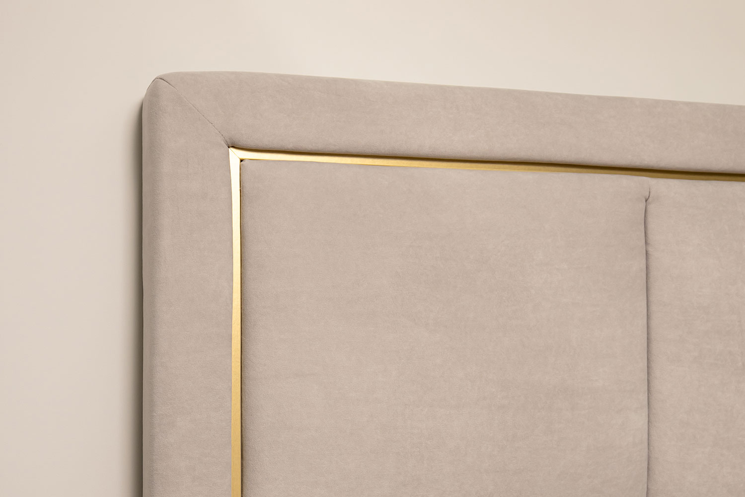 - Декоративная акцентная рама в изголовье кровати повторяет форму ручек.