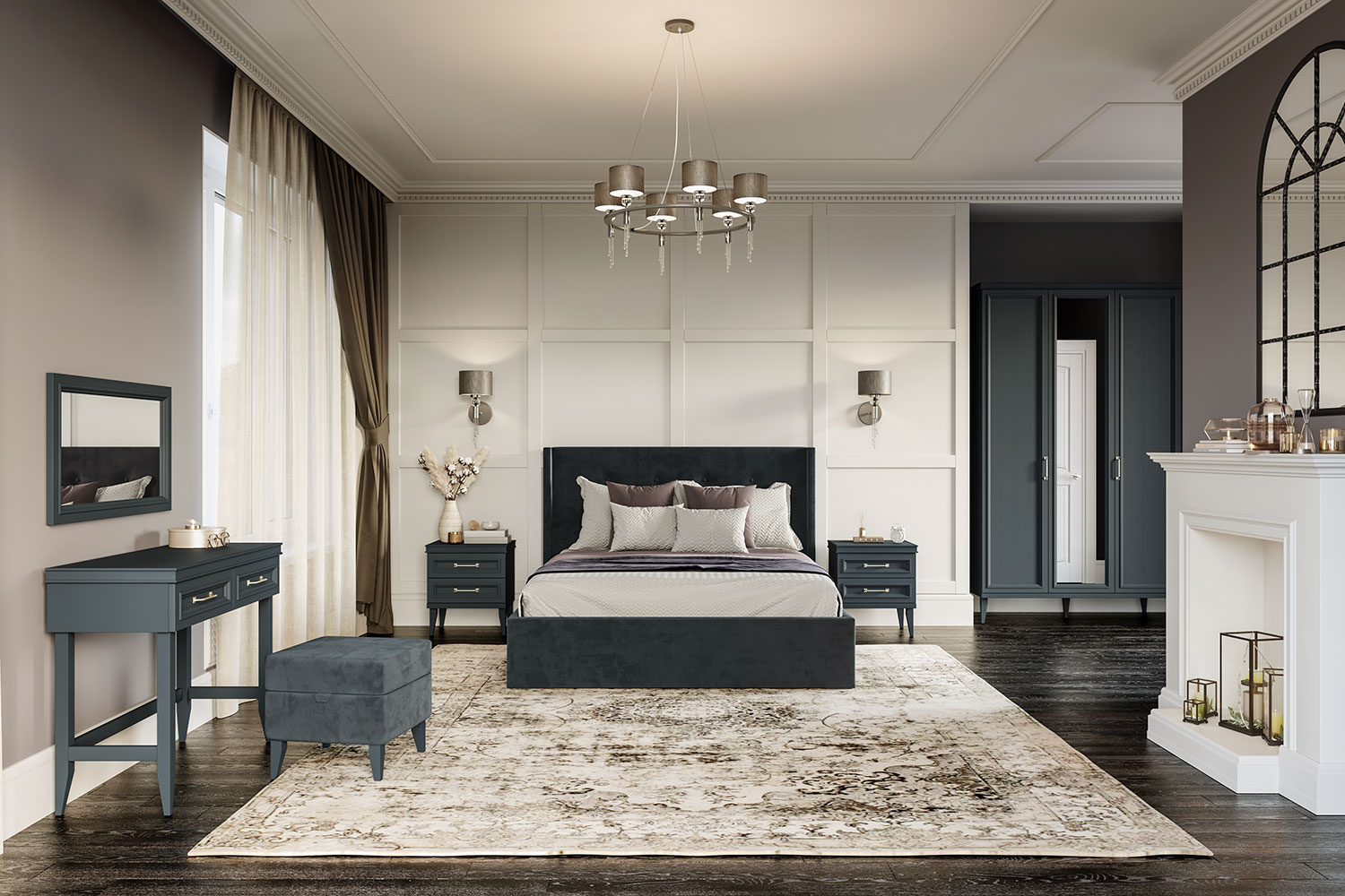 – описание: стиль английский, неоклассика, цвет серый уголь.