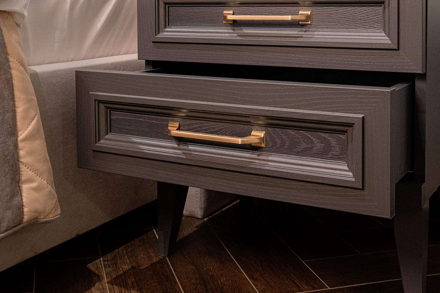 - В выдвижных ящиках используются направляющие скрытого монтажа со встроенным доводчиком.