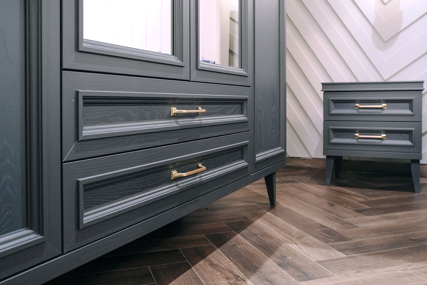 - В выдвижных ящиках используются направляющие скрытого монтажа со встроенным доводчиком.
