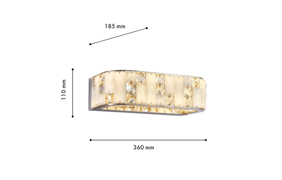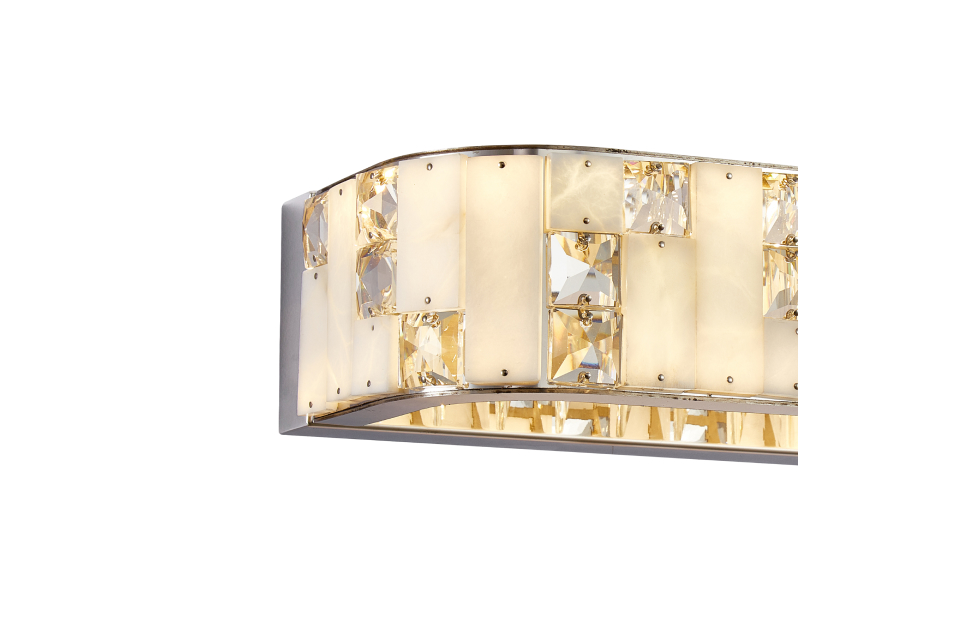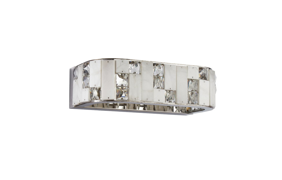 Конструкция бра добавит в интерьер особый шарм и легкость. Хромированная отделка придает этим светильникам современный вид и отражает свет, создавая игру бликов и отражений. Декор в виде тонких пластин из белого мрамора придает изысканный и шикарный вид, особый блеск и нежность. Прозрачные вставки из хрусталя добавляют дополнительную яркость и контрастность. Бра из этой коллекции создают изумительное освещение и станут прекрасным украшением вашего интерьера. Они идеально впишутся в современный дизайн гостиной, столовой или спальни.