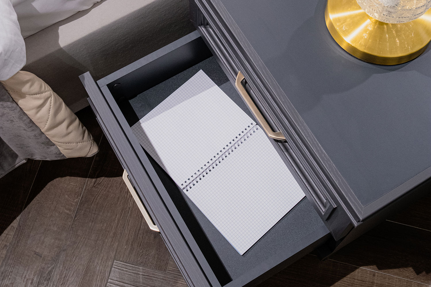 - В выдвижных ящиках используются направляющие скрытого монтажа со встроенным доводчиком.
