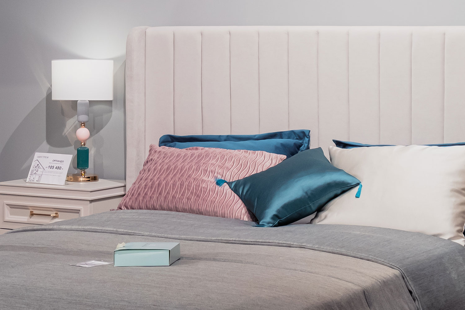 - Мягкий каркас кровати и пуфа: пенополиуретана (ППУ-поролон), синтепон и спанбонд;