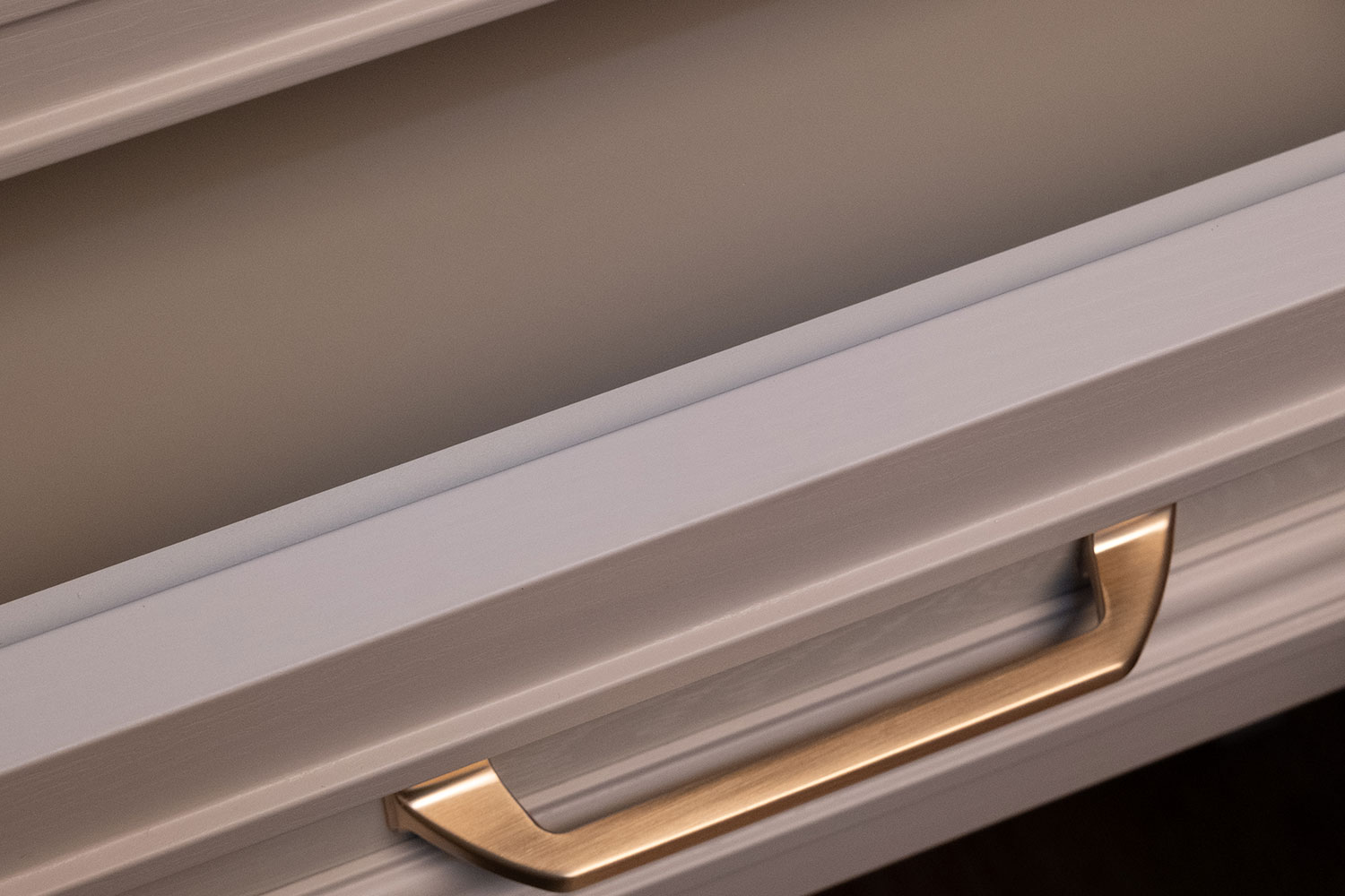 - В выдвижных ящиках используются направляющие скрытого монтажа со встроенным доводчиком;