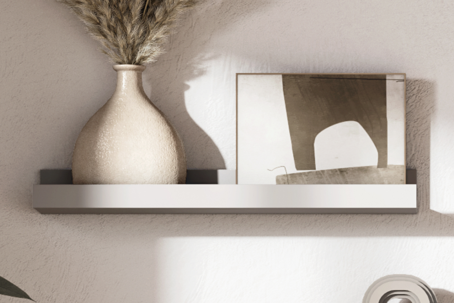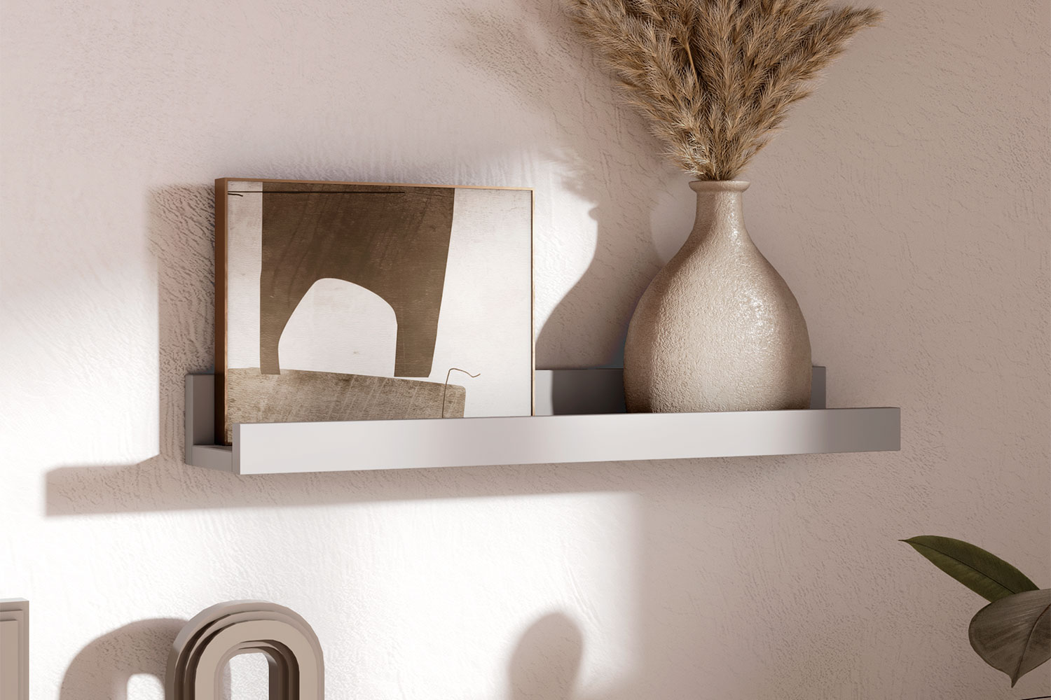 Полку можно использовать в композиции — комбинировать несколько вариантов размеров, чтобы создать настоящую галерею семейных фотографий или картин. Передний ограничительный профиль не даст соскользнуть предметам с полки.