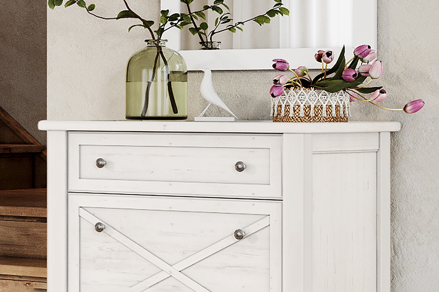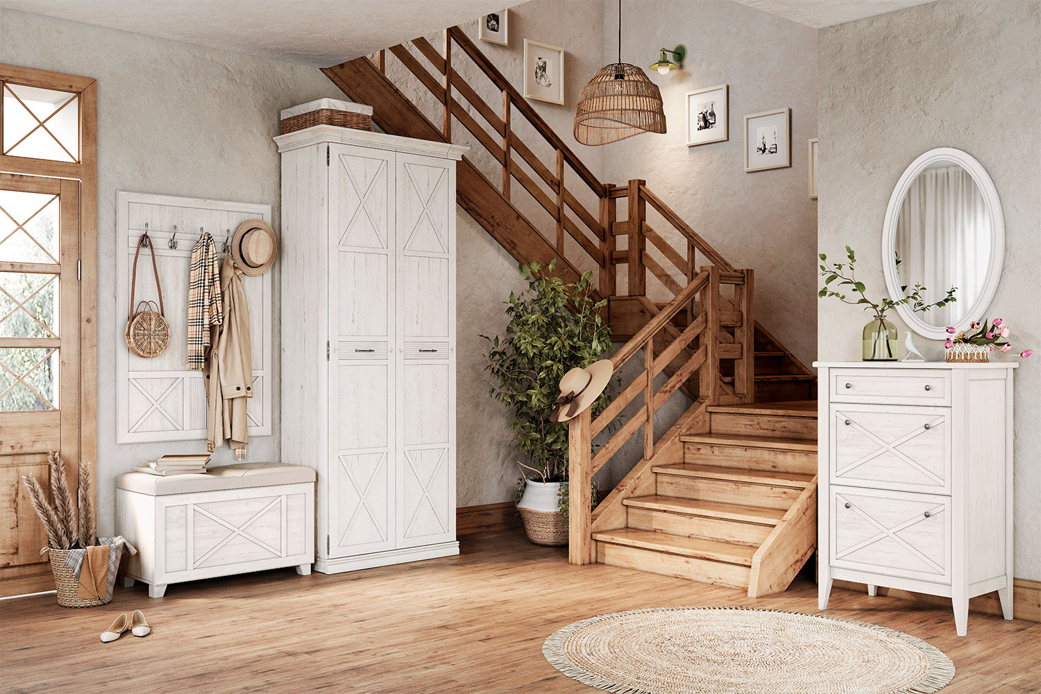 - Мебель Кантри украсит легкий классический интерьер прихожей;