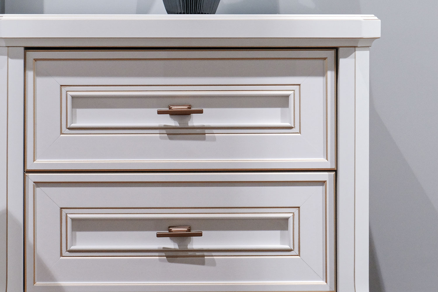 - На фасады вручную нанесена металлизированная патина в цвет ручек;