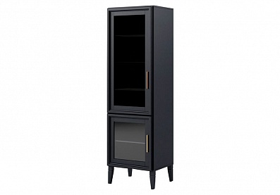 - Внутреннее наполнение: 4 стеклополки 6 мм за стеклянным фасадом, и 1 полка ЛДСП 16 мм — за глухим;