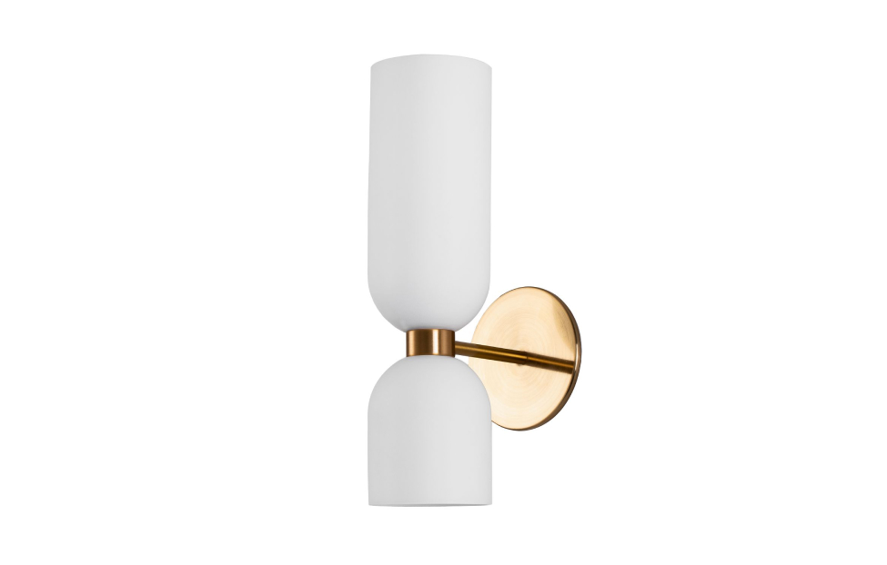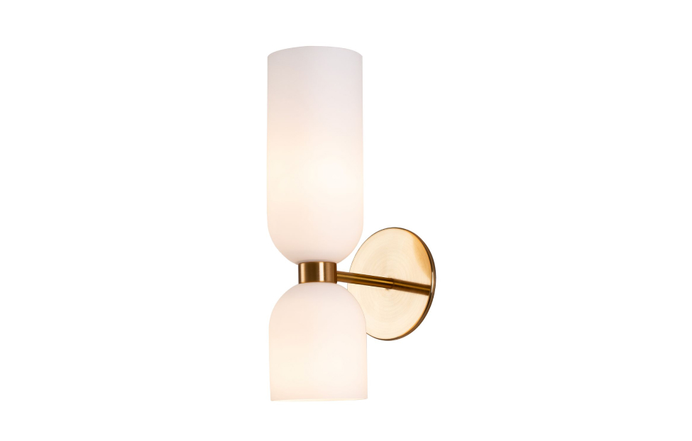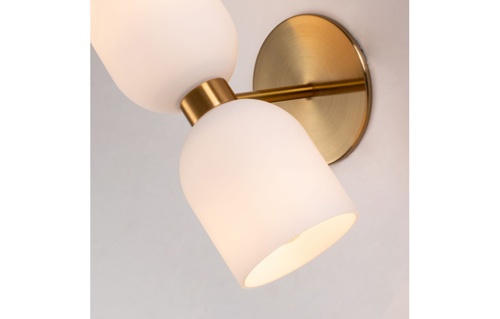 Настенный светильник коллекции Amusing с белыми выдувными плафонами и латунным каркасом.