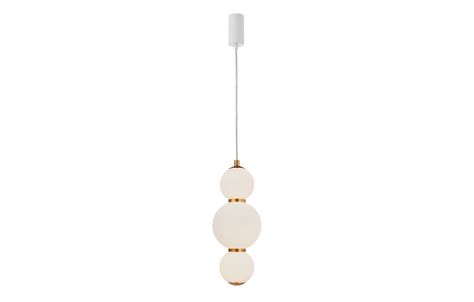 Коллекция Kiran – это гармония стекла и света. Стеклянные фактурные плафоны раскрывают свой характер в мягком струящемся свете и узорных отражениях на потолке, стенах, предметах мебели. В качестве источника света используется трубка с LED-модулем, проходящая внутри плафонов из белого фактурного стекла. Декоративный ободок золотого цвета добавляет сдержанного блеска в дизайн коллекции и придает ей особую привлекательность. Регулируемая высота.