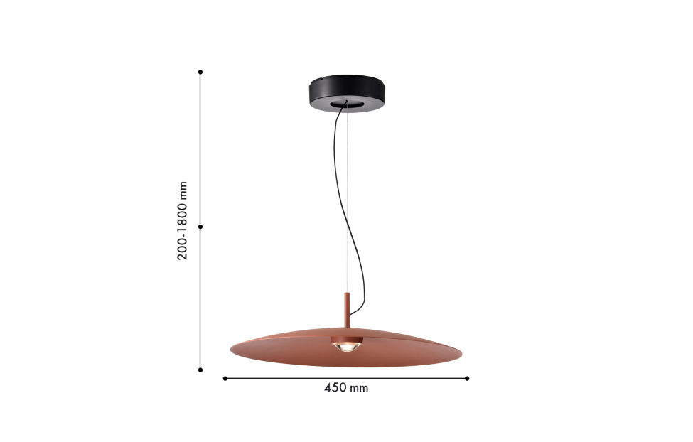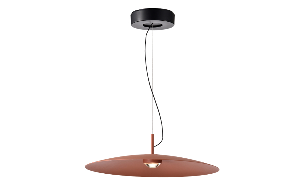 Коллекция подвесов Lars обладает архетипической практически плоской формой купола. Крупный по диаметру алюминиевый плафон имеет лаконичный силуэт и оснащен светодиодным источником света под акриловой лупой. Использование лупы в качестве рассеивателя очень популярно в настоящее время, так как кроме эстетической составляющей, она усиливает и равномерно распределяет поток света. Металлический каркас черного цвета, плафон в кирпичном цвете, диаметром 45 см, алюминиевый плафон имеет лаконичный силуэт и оснащен светодиодным источником света под акриловой лупой, регулируемая высота.