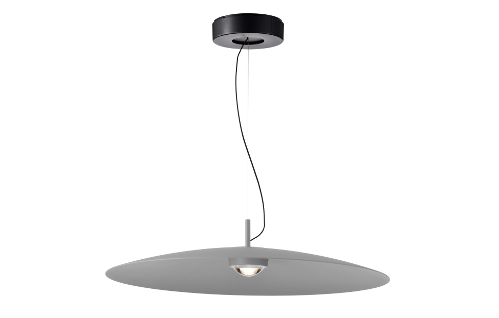 Коллекция подвесов Lars обладает архетипической практически плоской формой купола. Крупный по диаметру алюминиевый плафон имеет лаконичный силуэт и оснащен светодиодным источником света под акриловой лупой. Использование лупы в качестве рассеивателя очень популярно в настоящее время, так как кроме эстетической составляющей, она усиливает и равномерно распределяет поток света. Металлический каркас черного цвета, плафон в сером цвете, диаметром 60 см, алюминиевый плафон имеет лаконичный силуэт и оснащен светодиодным источником света под акриловой лупой, регулируемая высота.