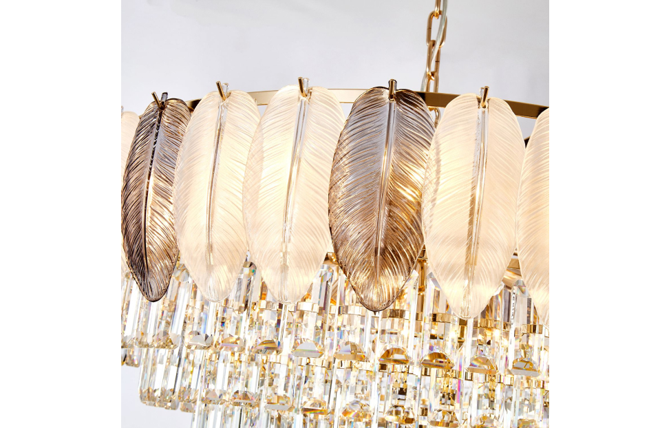 Отображение природных мотивов в предметах интерьера всегда выглядит утонченно и изящно. Это можно сказать и о нашей коллекции Dolor. Каркас коллекции в цвете золота оформлен декоративными лепестками из белого и серого стекла, которые обрамляют хрустальный водопад кристаллов высшего качества прямоугольной формы.