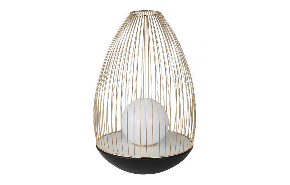 Коллекция Core — это гармоничное сочетание прочности металла и нежности стеклянных плафонов. Стеклянный выдувной плафон заключен в проволочный каркас из тонких, спаянных между собой металлических трубочек, создавая эффект золотой клетки, защищающей светящийся шар. Настольная лампа диаметром 30 см, стеклянный выдувной плафон заключен в проволочный каркас из тонких, спаянных между собой металлических трубочек, каркас в черном цвете с золотым, модуль LED.