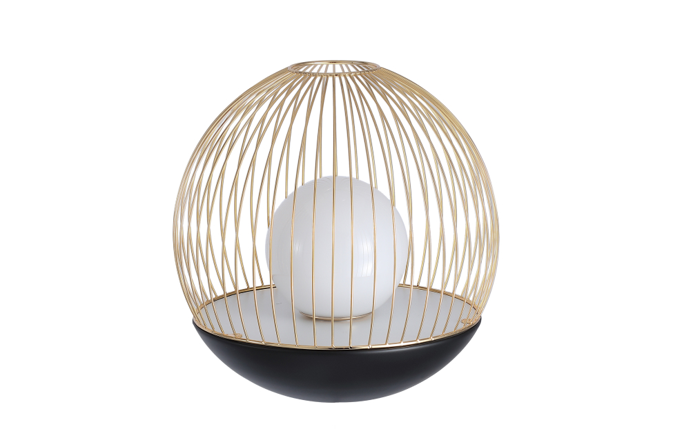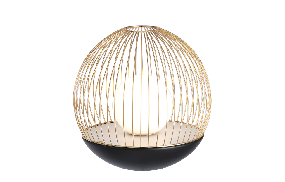 Коллекция Core — это гармоничное сочетание прочности металла и нежности стеклянных плафонов. Стеклянный выдувной плафон заключен в проволочный каркас из тонких, спаянных между собой металлических трубочек, создавая эффект золотой клетки, защищающей светящийся шар. Настольная лампа диаметром 30 см, стеклянный выдувной плафон заключен в проволочный каркас из тонких, спаянных между собой металлических трубочек, каркас в черном цвете с золотым, модуль LED.