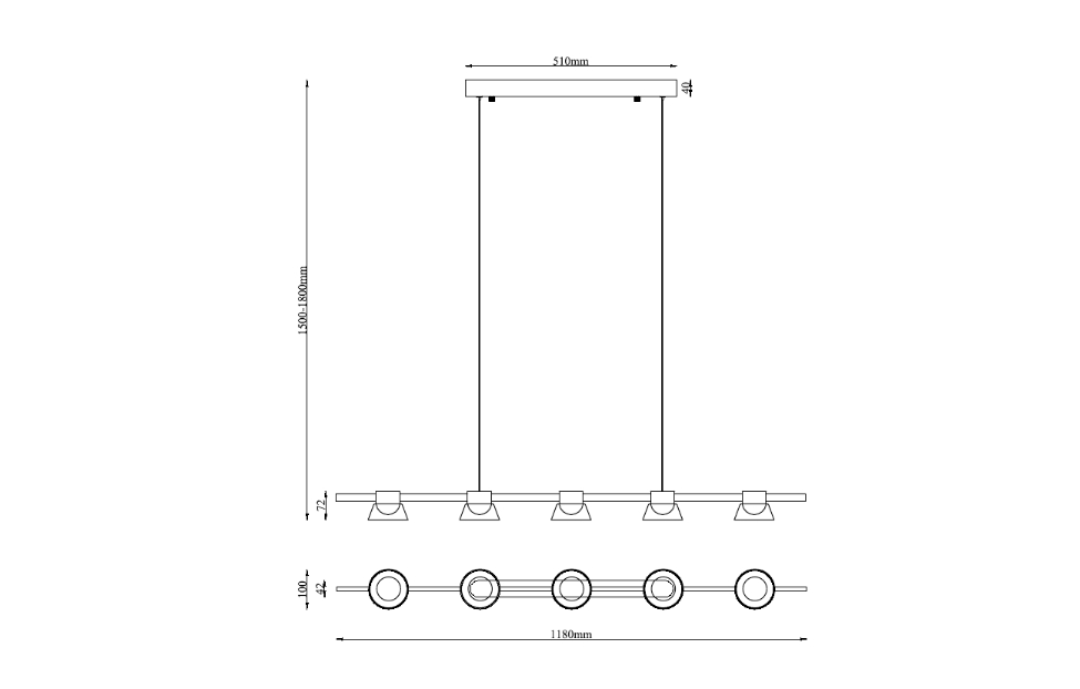 Купить Подвесную люстру Twix L1180*W100*H1200/1800 5*LED*6W в интернет-магазине мебели «Ангстрем»