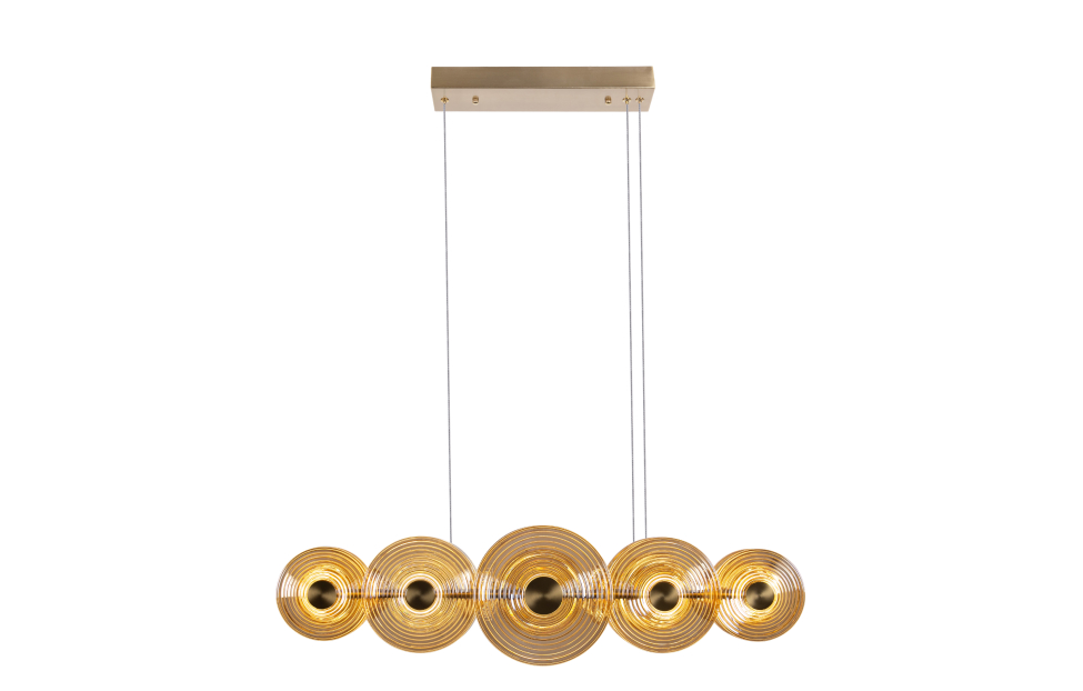 Непревзойденная модель 4571-10P от немецкой компании Favourite относится к коллекции Whirlpool и отлично подойдет для установки на потолок кухни, оформленной в стиле модерн. Подвесной светодиодный светильник Favourite Whirlpool 4571-10P с круглыми плафонами осветит помещение площадью 10 кв. м. Осветительный элемент встроен в конструкцию и не требует приобретения дополнительных лампочек. Прибор произведен с использованием материалов: стекло и металл и может использоваться для натяжного потолка. Основным цветом товара является желтый, латунный и янтарный.