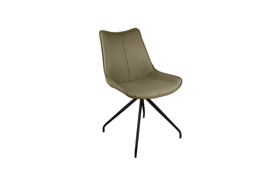 Стул Барса с поворотным механизмом прекрасно впишется в любой интерьер и комнату. Такой стул можно использовать как в качестве обеденного стула, так и в виде рабочего кресла к письменному столу. Обивка из искусственной кожи в актуальном серо-зеленом оттенке прекрасно гармонирует с металлическими ножками черного цвета. Такие стулья украсят современные интерьеры, а также пространства в стиле эклектики.