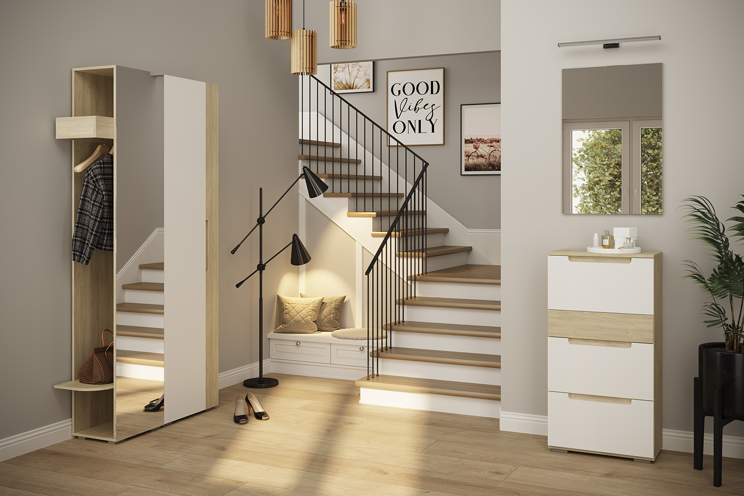 – описание: размер 118.8x60.1x35.4 см, стиль современный, минимализм, цвет швейцарский вяз, белый, назначение для прихожей.