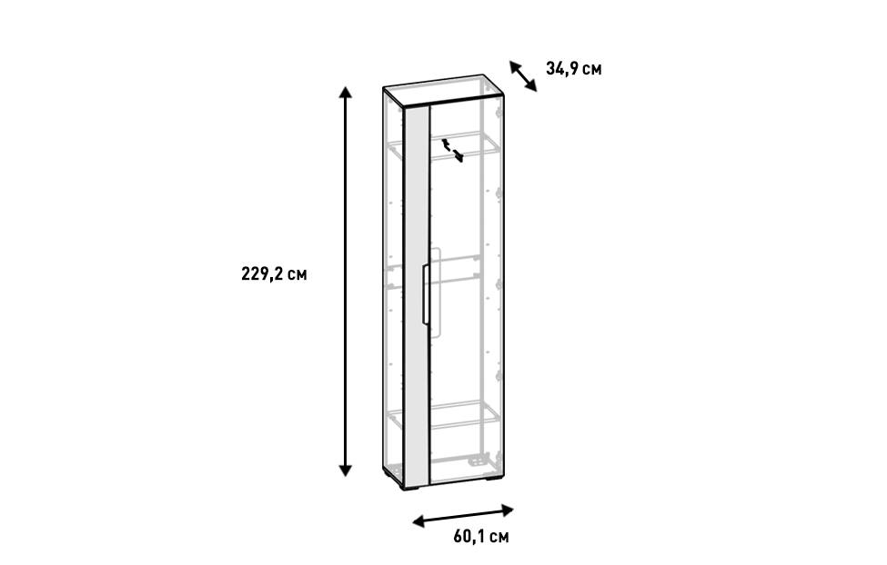 – описание: цвет швейцарский вяз, белый, размер 229.2x60.1x34.9 см, назначение для одежды, стиль современный, минимализм.