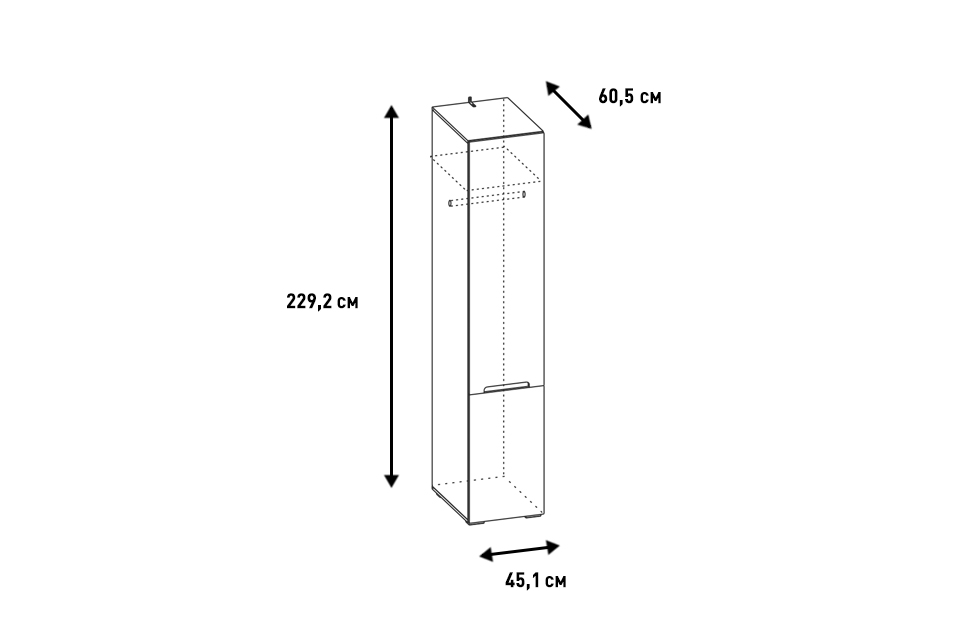– описание: назначение для одежды, стиль современный, минимализм, цвет швейцарский вяз, белый, размер 229.2x45.1x60.5 см.